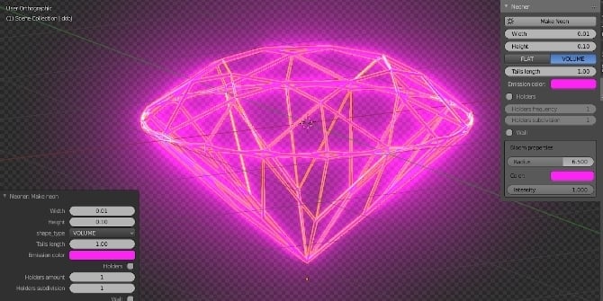 - Pressing the “Make Neon” button in the add-on panel will convert the active object into a neon highlight.