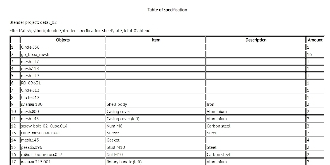 Blender 3D add-on for making specification tables for the project.