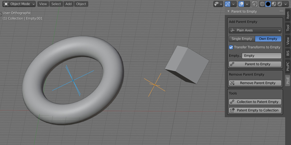 The "Remove parent Empty" button removes parenting to empty and deletes it from the scene.